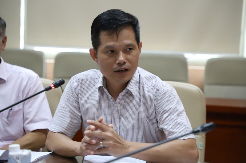Phó vụ trưởng Vụ Bảo hiểm y tế Hoàng Trung Tuấn báo cáo tại cuộc họp